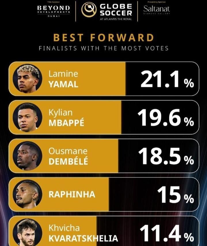 2025年环足奖最佳前锋结果一出炉,全网球迷直接炸锅。18岁的巴萨小将亚马尔以21.1%的得票率强势登顶,硬生生把单年狂轰55球的皇马巨星姆巴佩挤到第二,这样的结果让不少人直呼足坛格局要洗牌。